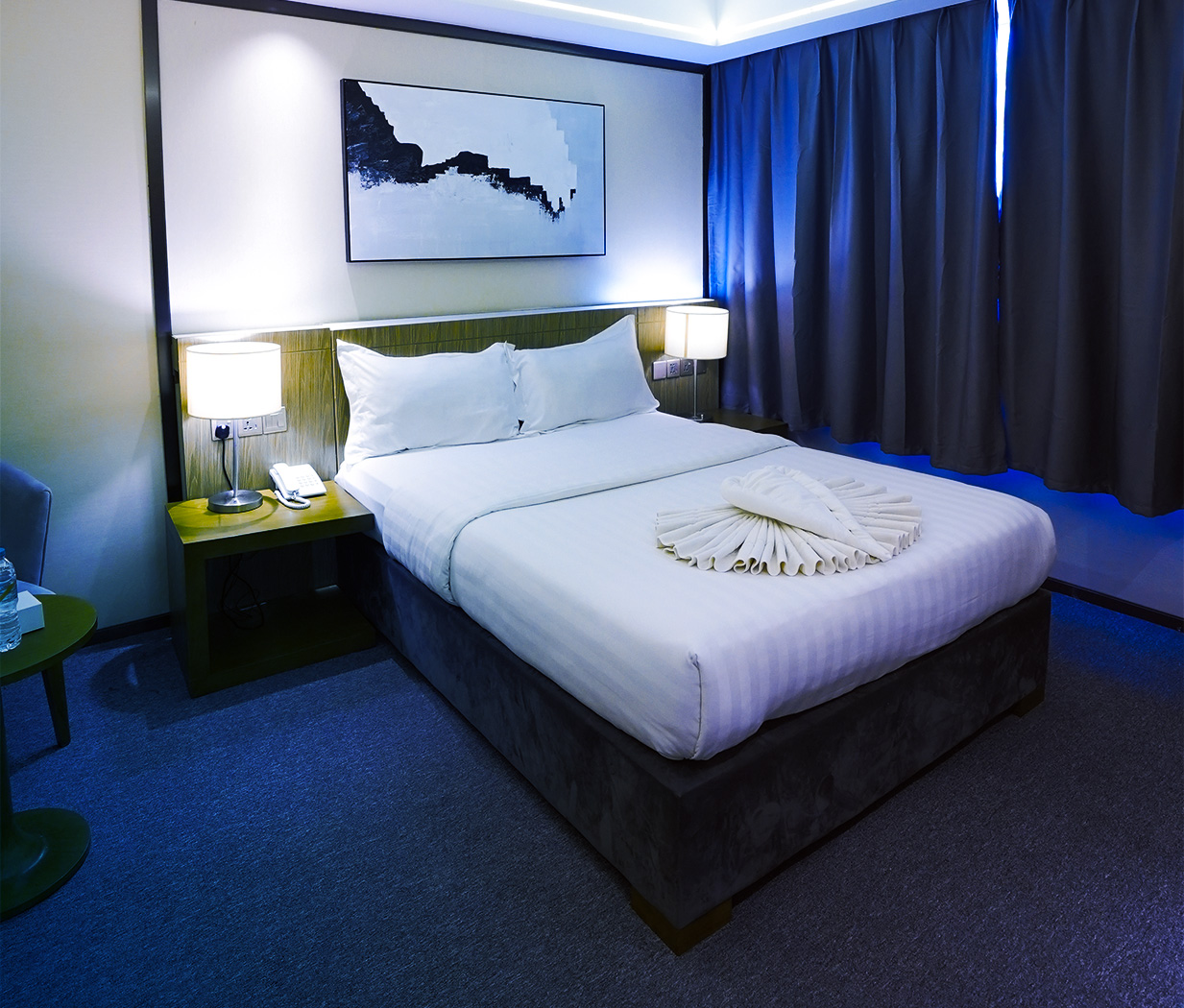 The Deluxe Connecting Room is ideal for families or groups, offering connecting rooms for added privacy and convenience. Each room includes a work desk and chair, flat-screen TV, bedside lamp, air conditioning, Wi-Fi, mini fridge, kettle, water, cups, sugar, creamer, tea bag, chest drawers, wardrobe, bedside tables, telephone, and a private bathroom with shower and complimentary toiletries.